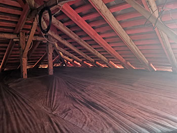 Ремонт по данному адресу был запланирован на май 2021 года. Перед началом работ кровля жилого здания прошла тщательное обследование. В ходе осмотра сотрудники отдела технического надзора выявили ряд повреждений: в частности, они касались неудовлетворительного состояния кровельного покрытия и утеплителя, а также сгнившей стропильной системы.