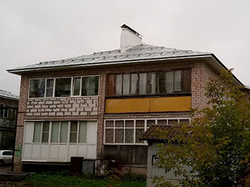 К работам подрядная организация приступила в срок, установленный договором строительного подряда. Ремонт производился в соответствии с разработанной проектно-сметной документацией. Так в ходе капремонта строители выполнили усиление стропильной системы, полностью заменили утеплитель и кровельное покрытие из шифера на металл, отремонтировали вентиляционные каналы и дымоходы, заменили слуховые окна, а также по всему периметру здания установили новые карнизы и снегозадержатели.