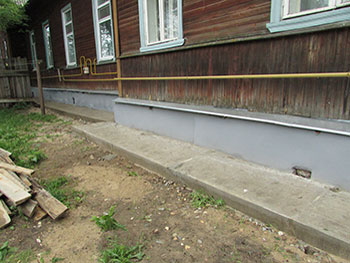 На момент подписания акта выполненных работ у старого дома выполнен ремонт цоколя. Для удобства жителей дома строители поставили и новое крыльцо на отдельном фундаменте.