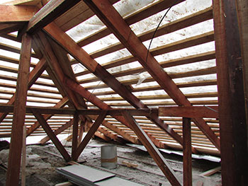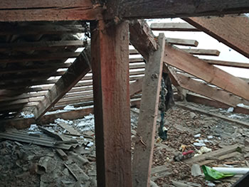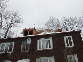 Капитального ремонта крыши жители дома №6 ждали не один год. Двухэтажное деревянное жилое здание было построено в далеком 1960 году. С тех пор крыша ни разу не ремонтировалась. О необходимости замены кровли говорил ее внешний вид: пошарпанная, местами сгнившая и прохудившаяся, часто протекала в сезон дождей и снега, доставляя немало хлопот жильцам.