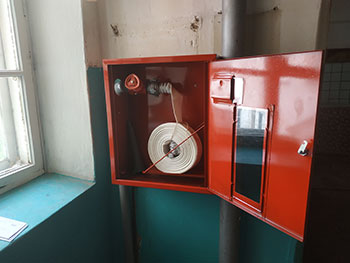 А вот от ремонта системы отопления большинство жителей отказалось, зато на сэкономленные деньги было принято решение произвести полномасштабный ремонт системы пожаротушения. Правда ее наличие считается только фактическим. При осмотре дома специалистами Фонда и подрядной организации было установлено отсутствие щитов, гидранта рукава и кранов. В подвале гидрант был и вовсе отключен от системы водоснабжения.