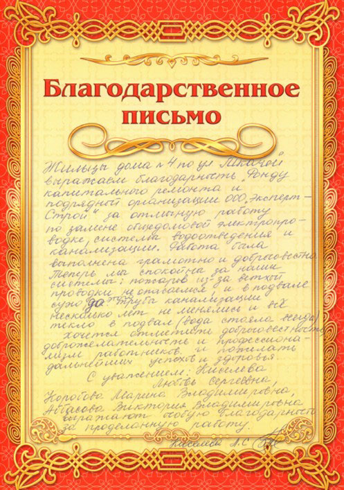 Официально работы были окончены 27 мая. Приемная комиссия прошла 6 июня. Проверяющие оценили качество работ как «положительно», а от жильцов дома в адрес регионального оператора пришли благодарственные письма.