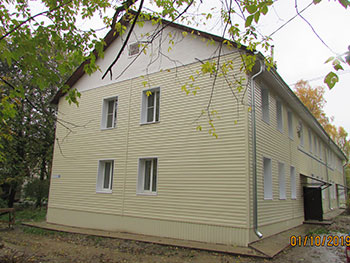 Согласно условиям договора к работам подрядчик приступил 25 мая. На преображение потрескавшегося фасада строителям потребовалась около четырех месяцев. За это время подрядная организация произвела усиление стен, утеплила фасад по всему периметру, обшила его сайдингом, заменила окна в подъездах, сделала отмостку, а также установила водосточную систему. Капитальный ремонт по данному адресу завершился раньше срока – 24 сентября.
