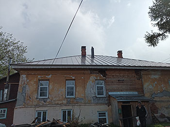 Последний из них относится к объекту культурного наследия. Дом №20 по ул. Володарского (г. Нерехта) был построен еще в прошлом столетии – 1937 г. Изначально здесь размещалась почтовая контора, и лишь со временем здание обрело статус жилого дома. Увы, но за 82 года крыша ни разу не ремонтировалась. Состояние главной верхней конструкции находилось в крайне плачевном состоянии: кирпичные трубы и борова разрушились, частично отсутствовал архитектурный декоративный элемент карниза, а из-за множественных дыр и трещин в квартирах жителей часто появлялись протечки.