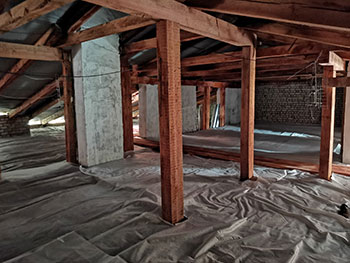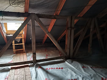 На объект подрядчик вышел 16 мая. В ходе работ бригада строителей обновила кровельное покрытие, обрешетку, выполнила ремонт вентиляционных шахт, усилила стропильную систему, отремонтировала обшивку фронтонов, а также обновила слуховые окна.