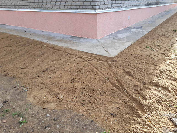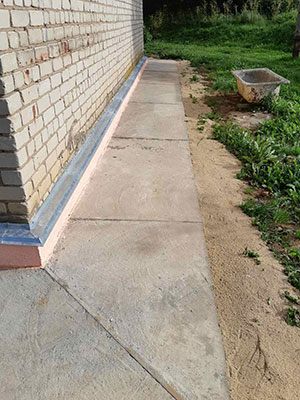 Подрядная организация вышла на объект согласно срокам, установленным договором строительного подряда. В ходе работ подрядчик произвел усиление фундамента, отремонтировал кирпичную кладку, отштукатурил стены жилого здания, утеплил цокольную часть по всему периметру дома, выполнил гидроизоляцию фундамента, а также произвел устройство новой железно-бетонной отмостки.