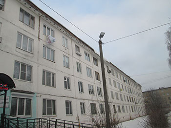 Дом № 32 на ул. 50-летия Ленинского Комсомола сложно не заметить: белый, высотой в четыре этажа, значительно массивнее и шире своих соседей по улице, построенный в 1967 году.