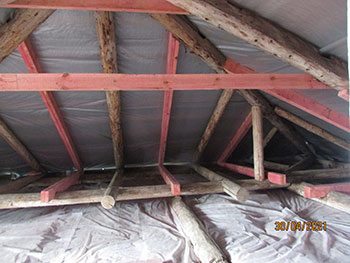 На объект подрядчик вышел в середине марта. В рамках капитального ремонта строительная бригада заменила кровельное покрытие из шифера на профилированный лист, обновила обрешетку и утеплитель, усилила стропильную систему, восстановила кирпичные трубы, а также установила снегозадержатели.