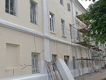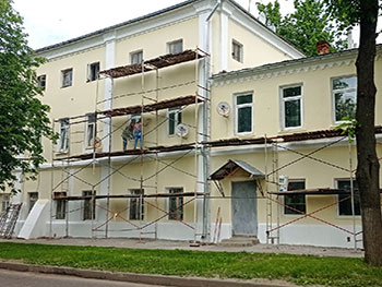 На ул. Лесная, 3/29, ведутся работы по ремонту фасада