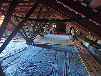 Износ старого кровельного покрытия по обоим адресам был существенный: конструкция имела множественные щели, трещины и сколы, обрешетка обросла грибком, стропильная система в некоторых местах имела прогибы, а также следы плесени.