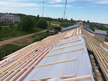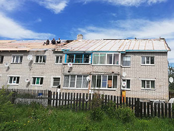 На пострадавшем доме от урагана начаты работы по ремонту крыши