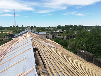 В настоящее время подрядчик работает над устройством новой обрешетки и усилением стропильных ног. На следующей неделе к жилому объекту будет осуществлен завоз кровельного покрытия из профилированного листа и кирпича для восстановления вентиляционных шахт.