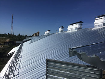 Отметим, что возраст жилого здания относительно молодой – двухэтажный дом был построен в 1990 году. Учитывая высокую степень повреждения, строителям пришлось демонтировать все старое покрытие. В рамках капитального ремонта подрядчик усилил стропильную систему, полностью заменил обрешетку, произвел устройство новой теплоизоляции на чердачном перекрытии, восстановил 11 вентиляционных труб из кирпича, а также смонтировал прочное кровельное покрытие из профилированного листа с дальнейшей установкой комбинированного ограждения крыши со снегозадержателями.