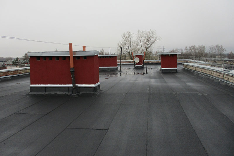 В ходе ремонта строители полностью поменяли стропильную систему, заменили шифер на металлический профилированный лист, утеплили крышу, установили кровельное ограждение и снегозадержатели.